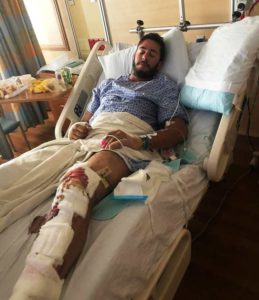 Além das fraturas na perna esquerda em cinco lugares, Oliveira também quebrou o pé, machucou os braços, mãos e dedos. O jovem passou por mais de quatro cirurgias para colocação de pinos e implantes.