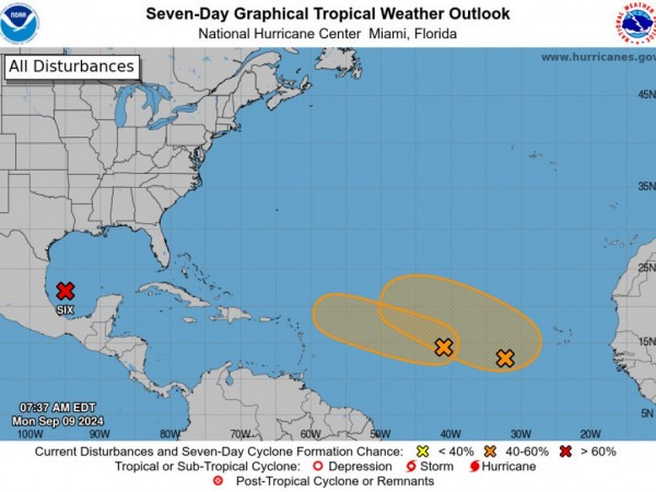O Centro Nacional de Furacões também está monitorando o Atlântico tropical central e o Atlântico tropical central oriental.