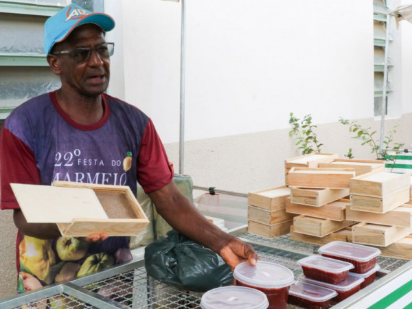 "Essa cultura vem de antes dos meus bisavôs, que passaram para os meus avós, depois para os meus pais, que me ensinaram. Você faz tudo do marmelo, você pode comer ele inteiro, fazer sopa, fazer doce. É muito produtivo para tudo", afirma Joselino Pereira Dutra, agricultor, diante de sua banca onde vende a marmelada. Além de fazer o doce, ele mesmo fabrica as simpáticas caixinhas de madeira onde a guloseima é armazenada e vendida. "Vem gente de muitos lugares, de Brasília, de Goiânia, Luziânia inteira. É uma festa muito tradicional", comemora.