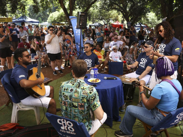 Enquanto ouvia os clássicos do choro, o público apreciava as barracas de comidas e buscava as sombras das árvores para fugir do calor de aproximadamente 27°C.
