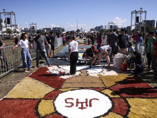 Conforme a arquidiocese, as atividades começaram por volta das 6h de hoje, com a montagem do tapete de 125 metros no gramado central. A montagem reuniu aproximadamente 600 pessoas integrantes de diversos movimentos, pastorais e serviços da arquidiocese.
