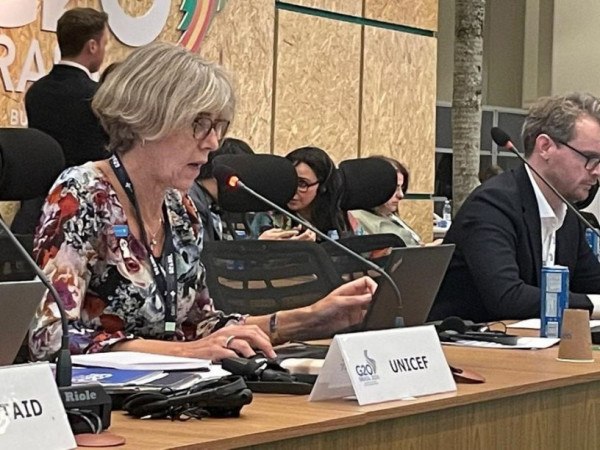 Maikee Arts- Estamos muito empolgados e felizes com o resultado das duas declarações e também parabenizamos o governo do Brasil porque um dos pontos-chave discutidos foi clima e saúde. Esta é a primeira vez que o G20 faz uma declaração exclusiva sobre clima e saúde. Ou seja, sobre o impacto das mudanças climáticas na saúde e sobre as medidas que precisam ser tomadas, tanto de adaptação quanto de mitigação, para reduzir as mudanças climáticas e seu impacto na saúde. Este é um grande avanço. Outro grande tema que foi discutido, também graças à liderança do Brasil, foi o foco na equidade. Não deixar ninguém para trás, focando nas pessoas mais vulneráveis. Isso aparece em muitos dos diferentes documentos que foram aprovados, incluindo o que trata de clima e saúde. São pontos muito importantes para o Unicef, pois são importantes para todas as comunidades, para todas as famílias e, particularmente, para as crianças.