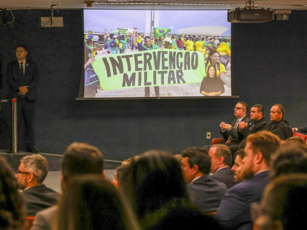 Um vídeo com cenas da “batalha campal”, como descreveu o ministro, foi colocado durante a sessão da Primeira Turma do Supremo, colegiado responsável por julgar o caso. Para rebater as alegações de falta de provas, Moraes apresentou, na parte final de seu voto, uma tabela relacionando dos os atos apontados pela PGR como criminosos e todas as provas documentais colhidas pela Polícia Federal (PF).
