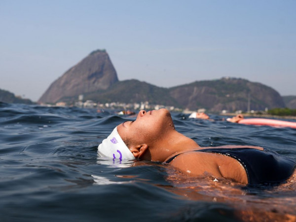De dentro do mar, na Praia do Flamengo, no Rio de Janeiro, a vista pode ser para o Pão de Açúcar, para o Cristo Redentor ou para dentro de si mesma.