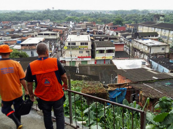 A cidade do Guarujá (SP), na Baixada Santista, registrou fortes chuvas durante a madrugada e manhã desta quinta-feira (5). Segundo a Defesa Civil estadual, houve um deslizamento na Viela São Cristóvão, atingindo três casas que haviam sido desocupadas preventivamente.