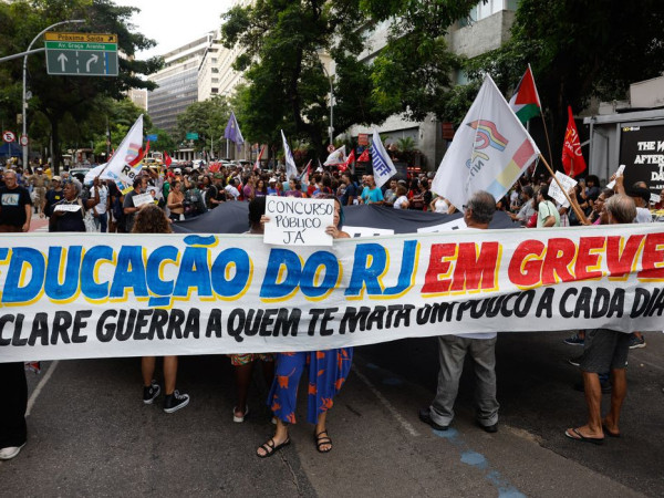Professores e funcionários administrativos das redes de educação municipal e estadual do Rio de Janeiro realizaram nesta quinta-feira (9) uma paralisação de 24 horas para cobrar recomposição salarial e melhorias nas condições de trabalho.