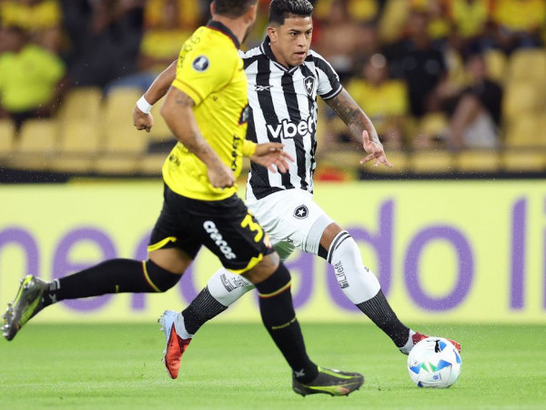 Com a sua equipe atuando fora de casa, o técnico argentino Martín Anselmi optou por uma estratégia pragmática no primeiro tempo, aguardando pelo adversário no campo de defesa e apostando nas transições rápidas para o ataque. Porém, esta aposta não foi efetiva, e o time equatoriano, que forçou as bolas levantadas na área botafoguense, foi mais eficiente para abrir o marcador.