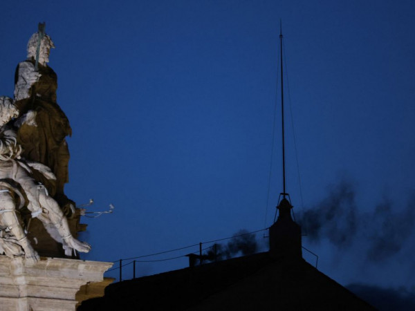 fumaça preta saiu da chaminé acima da Capela Sistina, indicando votos inconclusivos.