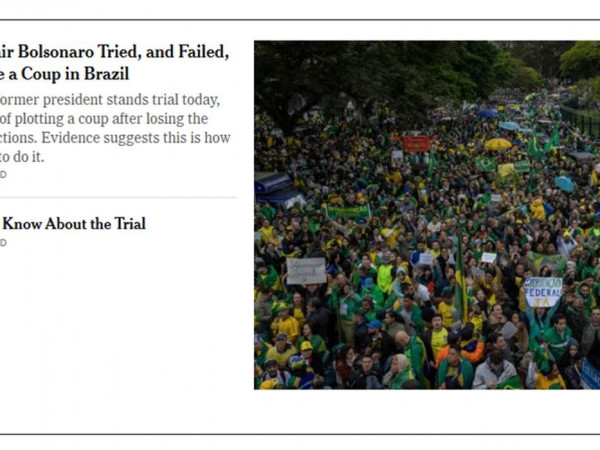 Alguns dos principais jornais ocidentais destacaram nas primeiras páginas de seus sites, na manhã desta quarta-feira (2), o julgamento por tentativa de golpe de Estado contra o ex-presidente Jair Bolsonaro e outros sete aliados, entre generais e políticos.