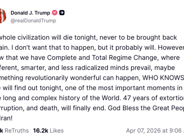 O presidente dos Estados Unidos, Donald Trump, voltou a elevar o tom contra o Irã nesta terça-feira (7), ao afirmar que “uma civilização inteira provavelmente morrerá esta noite”. A declaração foi feita em uma publicação na rede social Truth Social, em meio à intensificação do conflito no Oriente Médio.